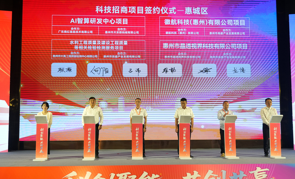 大会现场举行了科技招商项目签约仪式,主要包括商红信息AI智算研发中心、优必选多模态智能服务机器人、离子液体法CO2捕集吸收剂技术等12个项目,覆盖惠城区、大亚湾开发区、仲恺高新区三大区域,既有契合惠州产业基础的优势领域延伸,也有面向未来的新兴赛道提前布局。